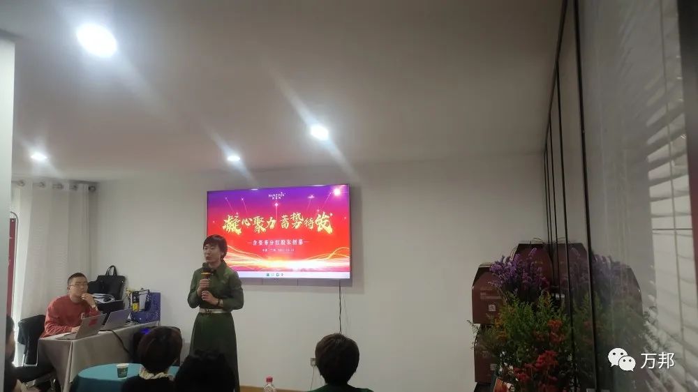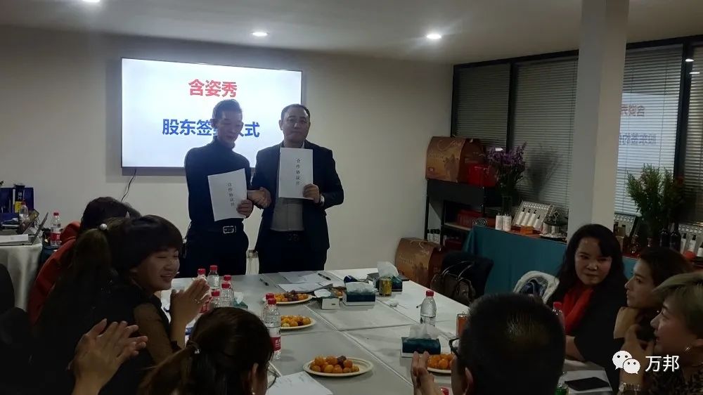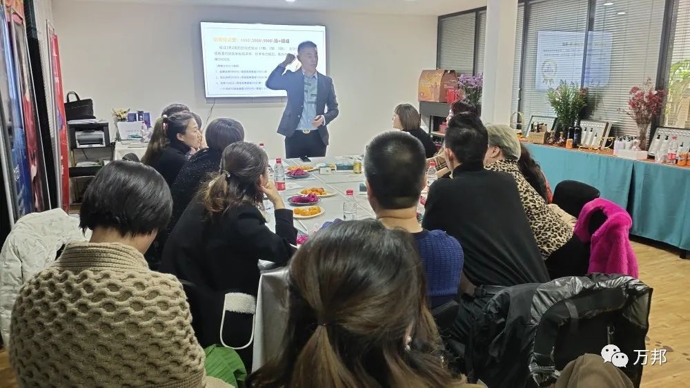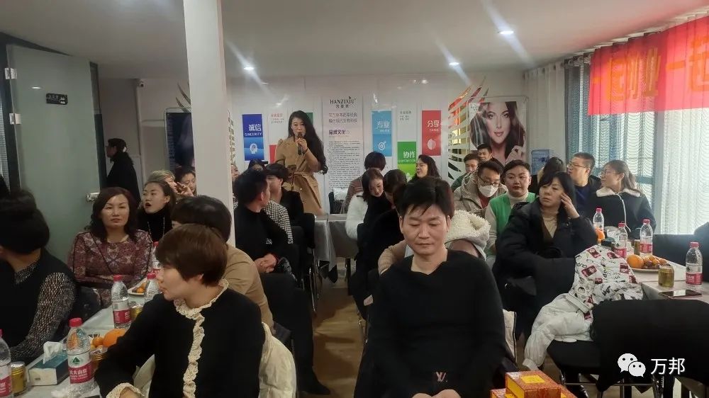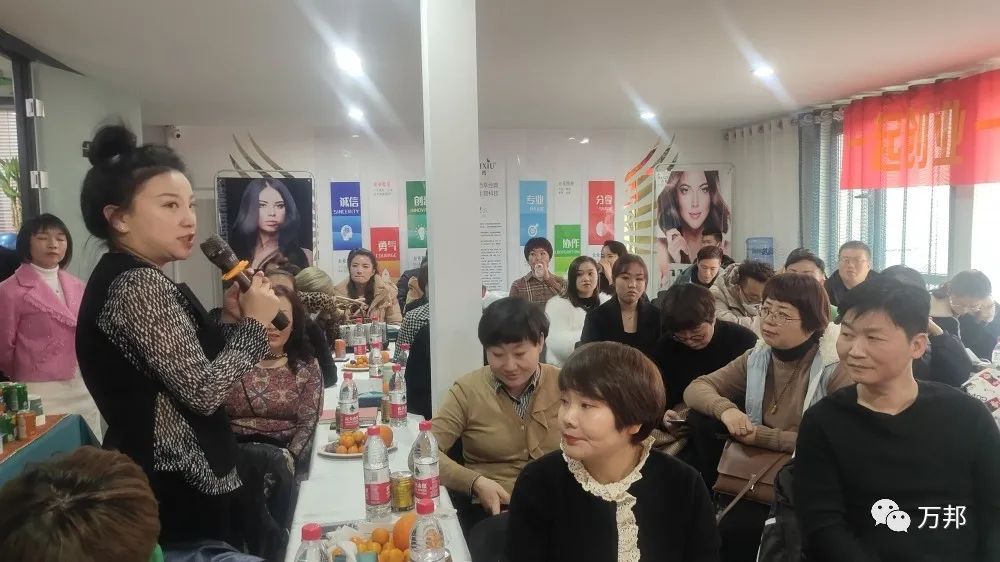 12月10日,萬邦集團攜手甘肅蘭州含姿秀第一輪股東會圓滿成功!現場本來預計20個位置,結果座無虛席,都非常積極,甚至站到了門外學習。為美業總裁點贊!