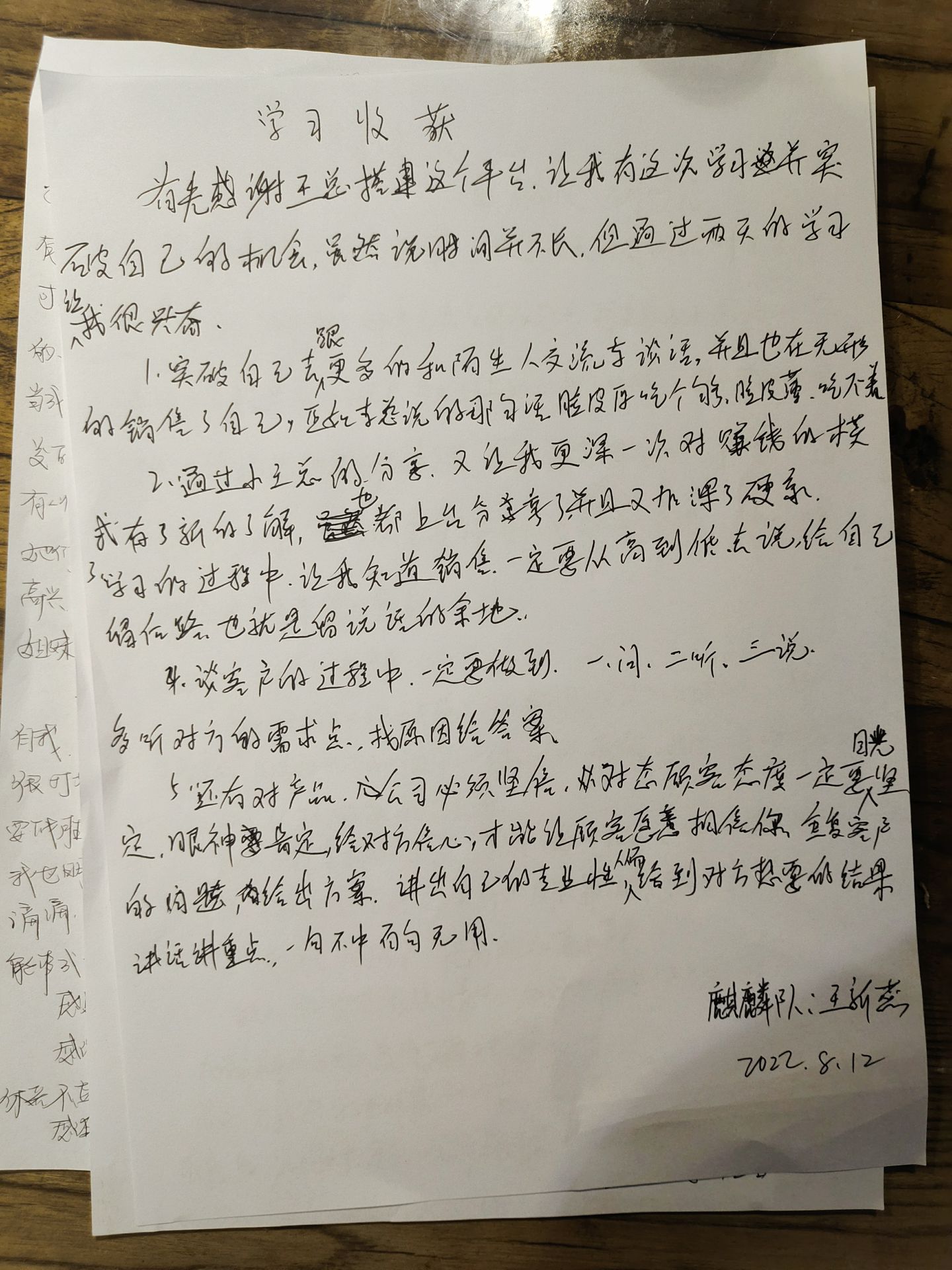 在這次特訓會中,各位學員們都寫下心得體會,記錄自己的蛻變之旅,分享自己的每一次進步,紛紛感謝公司和萬邦老師為自己提供了成長的機會。